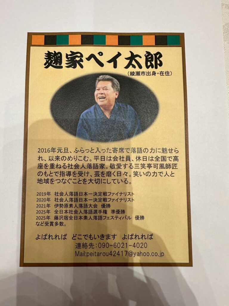 例会 第1320回 令和7年 11月27日 2025 12/11 例会例会報告 2025.12.11 目次第1320回綾瀬春日 海老名欅 合同例会 会長挨拶 落語家 ペイ太郎さん 出席報告 会員総数 出席 出席率 33名 21名63.64% 例会例会報告 例会 第1319回 令和7年 11月20日 例会 第1321回 令和7年 12月4日 この記事を書いた人 keyaki-office 関連記事 例会 第1281回 令和6年 12月5日 2024.12.06 2780地区 地区大会 令和5年 11月26日 2023.12.05 例会 第1318回 令和7年 11月13日 2025.11.17 第1212回 Intercity Meeting 例会 令和4年 2月11日 2023.02.15 第1191回 例会 2022.08.10 第1188回 例会 2022.07.20 例会 第1304回 令和7年 7月10日 2025.07.11 第1190回 例会 2022.08.03 コメント コメントする コメントをキャンセルコメント ※ 名前 ※ メール ※ サイト 次回のコメントで使用するためブラウザーに自分の名前、メールアドレス、サイトを保存する。